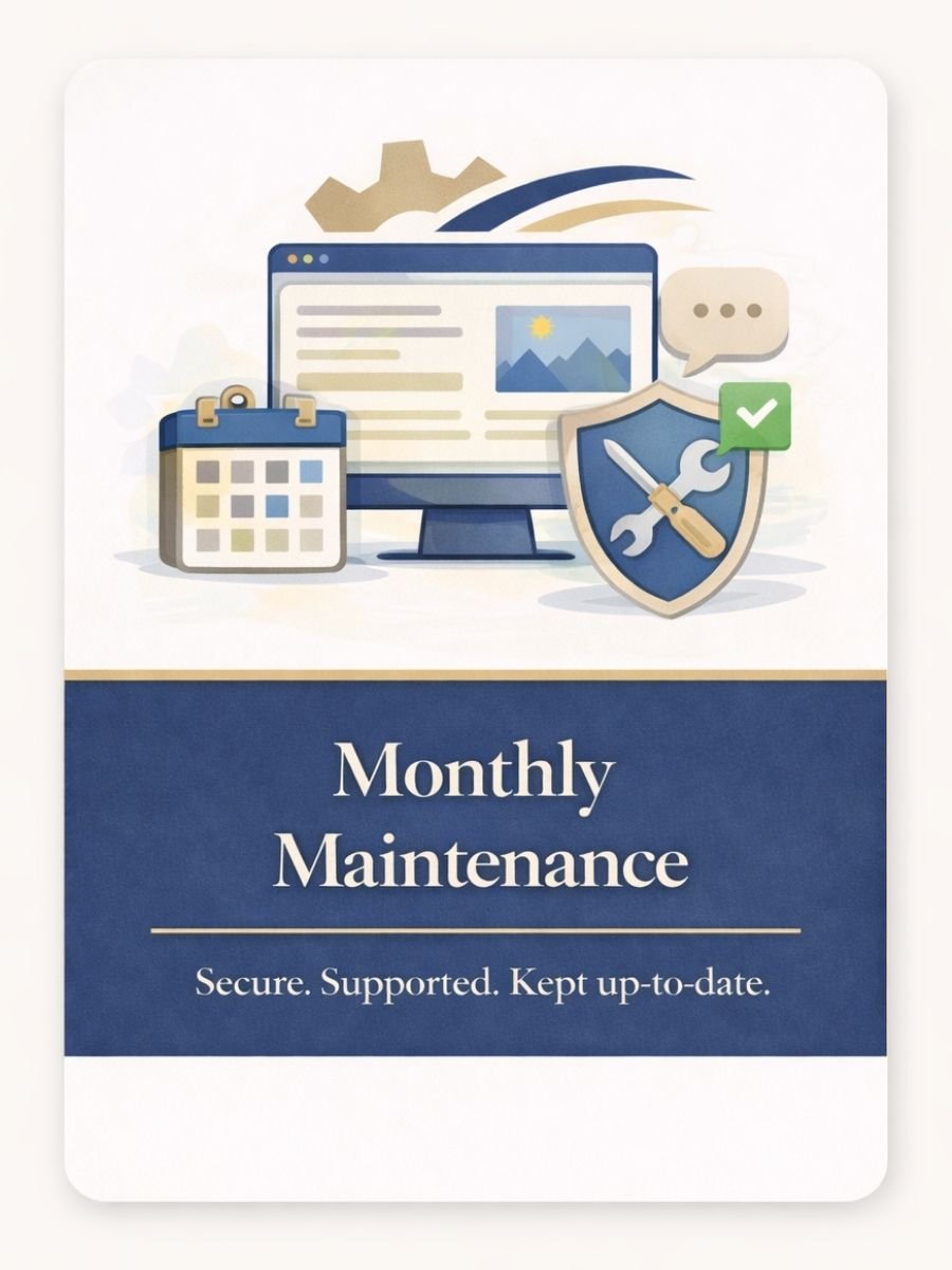 This service is for businesses who want peace of mind that their website stays up to date and working smoothly.